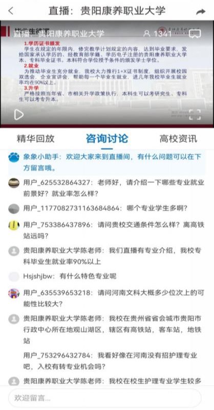 在直播期间,有很多考生及考生家长参与互动,针对录取原则、录取分数线、就业形势等提出问题。学校招生就业处老师对提出的问题一一解答。