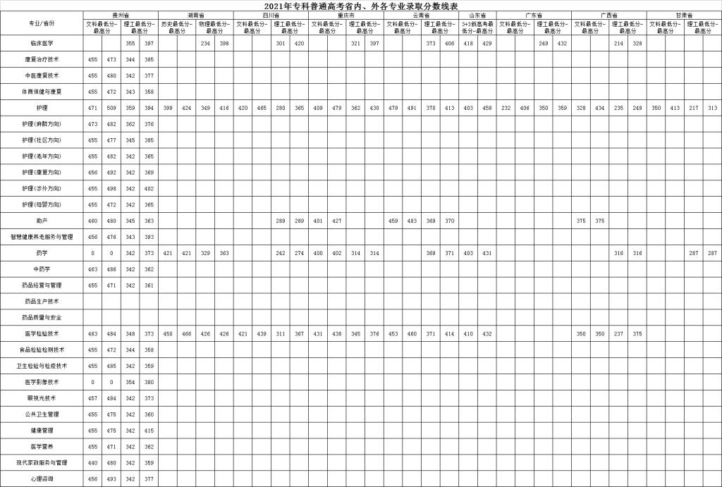 BEAT365英国官网2021年专科普通高考省内、外各专业录取分数线表
