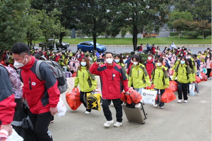 这430名返校师生志愿者中,有315人在观山湖区圆满完成核酸采集任务,有115人在花溪区方舱圆满完成核酸采集及核酸检测任务。党委委员、副院长陈嬝嬝也在完成增援任务之后随志愿者队伍一同返校。