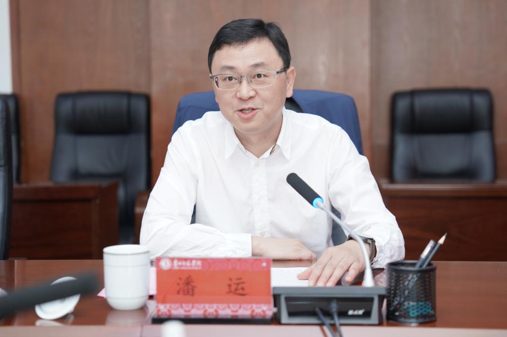 潘运在致辞中代表贵州师范学院对唐天一行的到访表示诚挚欢迎,并详细介绍了该校历史沿革、学科建设、专业特色、教学平台、社会服务等方面的情况。