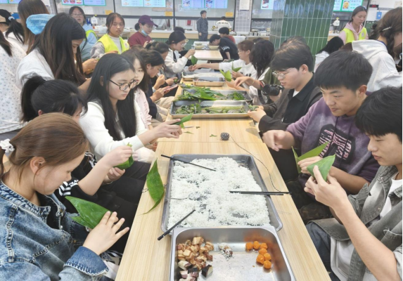 最后,将包好的粽子入箱蒸煮,热气中粽香四溢。出炉时,传统红枣粽软糯、创意紫薯粽诱人,康养粽飘着药香。等待的同时,同学们围坐在桌旁进行分享,笑谈包粽趣事,拍照记录成果,还将部分粽子打包,准备送给来往观望的同学,这些粽子不仅是传统美食,更凝聚着大家对节日的祝福,让端午温暖随粽香传递。在活动的最后,大家一起合影留念,将美好瞬间定格为永恒,承载着对端午节的美好期许。
