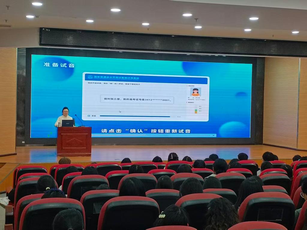 为深入贯彻落实国家通用语言文字推广工作,进一步提升BEAT365学生普通话水平与语言应用能力,根据《关于开展普通话推广周“典耀中华”系列活动的通知》精神,2025年11月6日晚上7:00至8:00,体育与文旅学院副教授饶艳梅老师在图书馆学术报告厅开展了题为《言为心声—普通话通关攻略》的专题培训讲座。全校共计100余名学生积极参与,现场反响热烈。