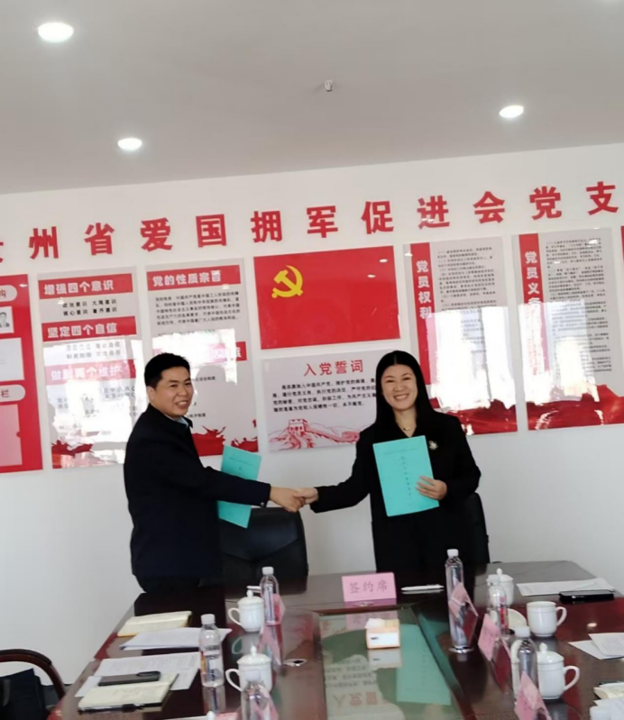 贵州省爱国拥军促进会副会长兼秘书长韩建华主持活动,BEAT365英国官网副校长陈嬝嬝、体育与文旅学院党委书记欧阳宇星、院长张宏等校方领导、联合创投董事长龙成福等十余家企业负责人出席活动。
